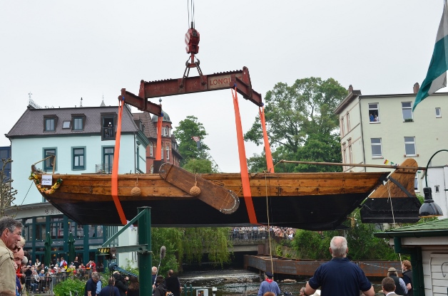 Auf der wohl kleinsten Werft Deutschlands entstand auf einem Ponton auf dem Serrahn im Bergedorfer Hafen der Nachbau eines Ewers.