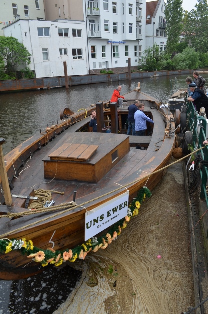 Nach dreijähriger Bauzeit konnte 2013 der "Vierländer Gemüse Ewer" getauft und zu Wasser gelassen werden.